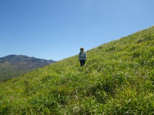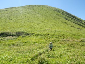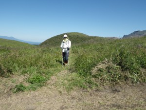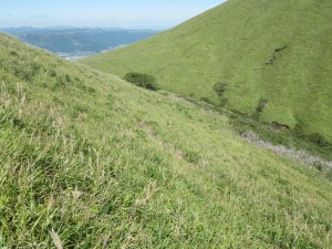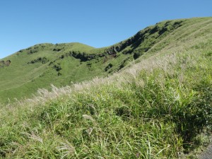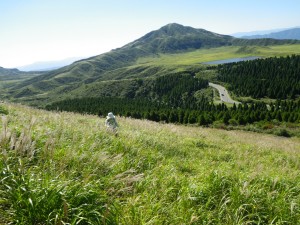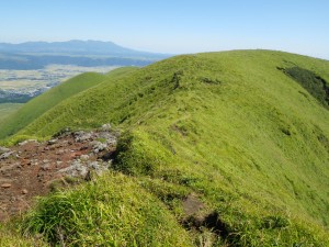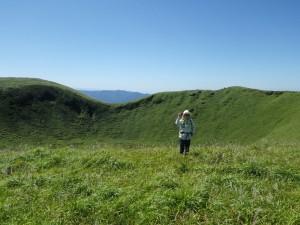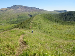 | 杵島岳を見ながら火口縁を歩く | 見渡す限り草原が続く | 西に向かって廻ると |