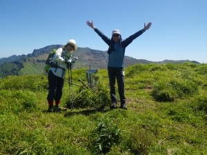 | 烏帽子岳を背にして | 階段をひたすら歩く | 山頂に着いた 360度の展望 |