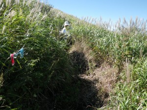 | フナバラソウ | アキノキリンソウ | 米塚を背にジグザクに急斜面を登る |