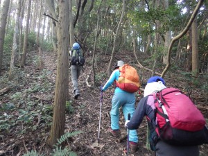 | 林道に出る(10:24) | フユイチゴの群落 | 急斜面を登る |