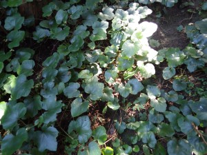 | 窪地に降りる | ここがワラビ田と言われる場所 | ハンショウヅル |
