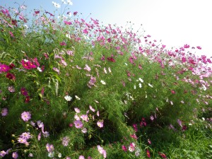 | のんびりと歩く | コスモスがきれい | 国道に出る(13:58) |