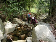 | 休憩 | 荒れた道を行く | 川沿いを行く |