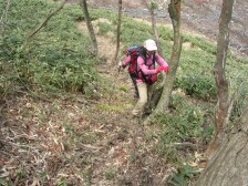 | ここから急登 | ササの中を掻き分けて歩く | 稜線に出た もう安心 |