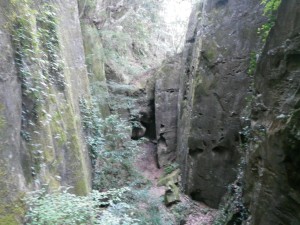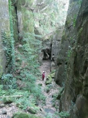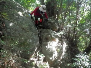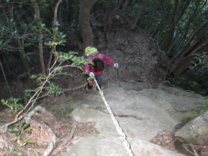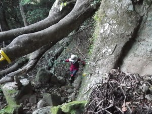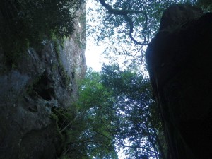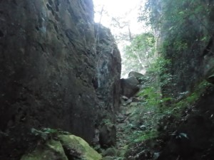 | 岩壁の間を通る | 見上げる | 家内に先に降りてもらう |