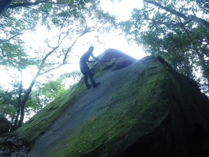 | 何かあるのか・・・ | 大岩展望所はこの石を登る(7:57) | 巨石の尾根である |