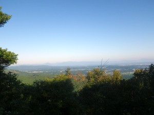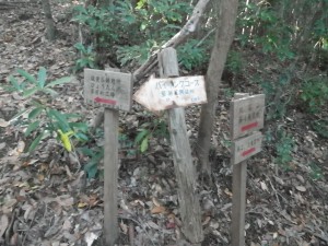 | 山頂からの眺め | 山頂にて(9:36) | 下山時でルートを間違えやすいので道標がある(10:04) |