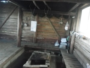| 山小屋に着く(9:08) | ロフト付きのりっぱな小屋である | 景色を楽しめるテーブルもある |