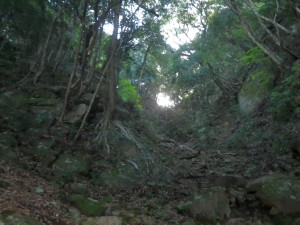 | なんかすごい | 急な斜面 落石注意 | ちょうど太陽が覗いていた |