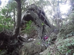 | ロープを頼る場所もある | 天狗岩の上部は砂になっている | 写真ではわかりにくいがとにかくでかい |