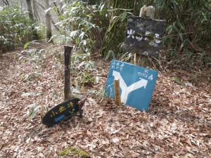 | ずいぶんと伐採されている | 昔道が分かれてたのか? | 大金峰への分岐 |
