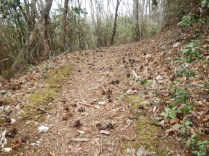 | マツボックリがたくさん | 伐採のため道路ができている | 見事な枝ぶり |