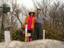 社員や取引先も一緒に登っているそうだ。山頂で記念としてQUOカードとお茶と梅ケ枝餅(よもぎ入り)を登頂した人に配っていた。私も遠慮なくいただいた。