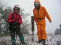 すがもりから「中峰」までガスの中歩いたが、一向に視界が開かない。