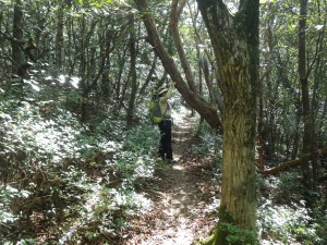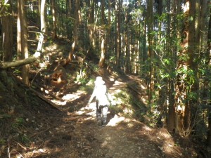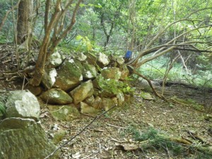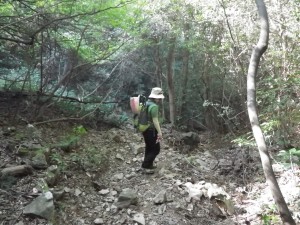| 尾根から谷へ | 炭焼き跡 | ごろごろと歩きにくい |