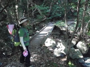 | ホッテ谷新道との分岐 | 急に明るくなる | 木の橋を渡る |