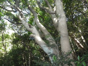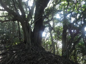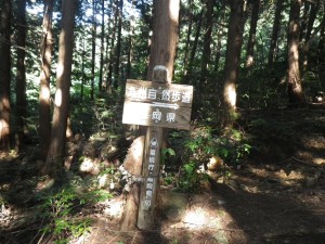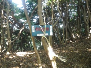 | 降りの方がつらく危険(9:50) | 稜線にあったでかい樹 | 朽ちた道標・・・後で並べ替えておいた(9:58) |