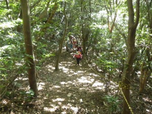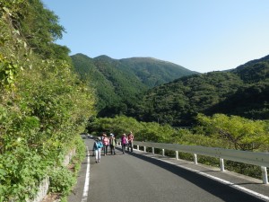 2013年10月13日 天気 晴れ ■出発時間:午前7時00分(曽根) ■メンバー:元山の会メンバー 男性3名 女性7名 食事会(飲み会)がきっかけで集まった元山の会のメンバーで福智山を歩くことになった。今回のルートは、私が昨年歩いたコースで少々ロングコースではあるが、初めての方も多いようなのでこのコースに決めた。 福智山ダムまでは、都市高速を利用するととても早いが、ナビがないと道がよくわからない。案の定、ナビを持たないメンバーが途中で迷ったらしい。 集合場所の内ケ磯(うちがそ)から一方通行で時計回りにダムを周回するきれいな舗装道ができている。速度を制限する為に舗装道の途中途中にアスファルトを盛り上げていて通り過ぎるたびにガタンガタンとなる。 雲取山の登山口を少し過ぎた場所の駐車スペースに車を停め、出発。わいわいがやがやと話しながら草が茂ってわかりにくくなった登山口から上り始める。 樹林帯は暗く夕方のようである。あずま屋と窯を見て急登が続く。気を緩めると滑ってしまいそうな登山道を登りつめると稜線に出る。雲取山へはここからさらにロープのある急斜面になり、一気に登ると西側が開けた山頂に出る。山頂はススキが覆い茂っていて10名のメンバーには狭すぎるのでススキには申し訳ないが、少しだけ足で掻き分けて集合写真を撮る。ここでメンバーの一人から良く冷えたナシをいただく。重たい荷物を持っていただき感謝である。 我々の後から1組(ご夫婦?と犬3匹)が登ってきたので入れ替わることに。急斜面は下りの方が、つらいし危険である。慎重に下り、稜線歩きが始まる。すぐに分岐があるが、道標が壊れていてそれを気にせずに真っ直ぐ進むとどうも様子がおかしい。メンバーの中に「こっちは違うのでは?」との声もあり、さっきの道標まで戻ってみる。『んん、前回の間違いと同じことをしてしまった。』とそこで気づく。道標を正しく土の上に置いて再び福智山の縦走路を目指す。 しばらく気持ちの良い樹林帯の道が続き、無事縦走路に出ると他の登山者の声も聞こえてきた。ここからは、メンバーも良く歩くコースであろう。烏落から急登が始まり、周りが開けて振り返ると雲取山や福智山ダムがずいぶんと遠くに見える。青空の下のと山々の姿は、きつさも吹っ飛ぶ最高の眺めである。 山頂からの展望を愉しみながらのランチは、やっぱりうまい。至福のひと時である。食事が終わったらKさんの知り合いに集合写真を撮っていただき下山開始。時間に余裕があるので上野越(あがの)から鷹取山に立ち寄る。いつ来ても広くてきれいな山頂は眺めが最高で昼寝をしたい気分になる。ここでも集合写真を撮るがセルフタイマーで撮ったにも関わらずなかなか良く撮れている。 上野越からは植林帯の登山道となり林道を時々横断しながら川沿いに福智山ダムまでひたすら降る。 車道に出ると駐車した場所まで道路を歩く。陽はいつのまにか暑い陽ざしになっていて少々汗ばむ。山と皆との別れが昔子どもの頃に感じた寂しさを思い出させる。・・・・『まだまだ遊びたい!』・・・・ 今日も山に自然に皆に感謝。 |