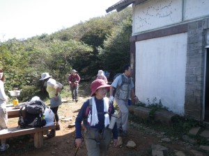 | 休憩場所であるが荒れている | ロープは比較的新しい | 井戸端会議中(8:55) |