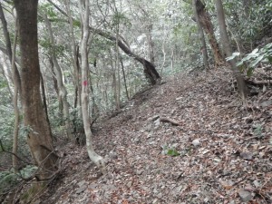 | 林道を横断(9:55) | 山瀬越(10:00) | 福智山への縦走路 |