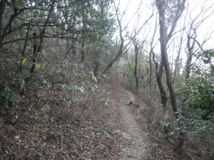 | 稜線の右を歩く頃は少し開けてくる | 雪がないので霜柱でも撮ろう | 烏落(10:48) |