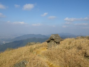 | 山頂の祠 | 山頂到着(11:08) | 平尾台や貫山 |