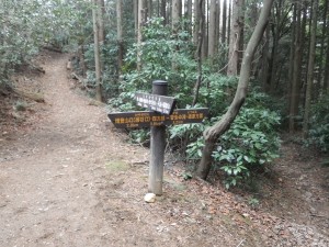 | Y字路にある説明板、ここは右へ進む(9:25) | 歩きやすい場所もある | ペンキがある |