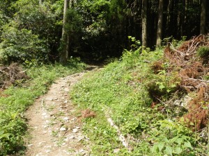 | 木を伐倒しているので注意とある | 作業道が横切っている | 作業道に出る(13:51) |