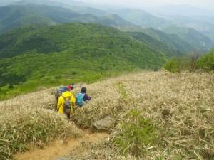 2014年5月4日(日) 天気 晴れ ■出発時間:午前8時00分(自宅) ■メンバー:友人M氏とそのご子息 GWの福智山は、もしかして初めてかもしれない。山頂は大変な賑わいでここは日本百名山かと思うくらい人気を感じたが、良く見ると小さな子供を連れの親子や学生の団体もいるようで山と言うよりも行楽地に来ている気分になってしまう。 今回は私の職場のエンジニアM氏とそのご子息(K君)と三人で出かける事になった。 経緯は、M氏のご子息が学校関係の行事で登山をする機会があって(親が言うには「山に目覚めた」ようだとのこと) その行事の計画では、福智山も登頂予定だったらしいが、悪天候で中止になったとのこと。 K君はそのことが諦めきれず、そこで私に白羽の矢が立ったわけである。 もちろん、喜んで引き受ける事にした。 山行は、5日の予定であったが、天候が崩れそうなので1日前倒しをしてもらい、そのおかげで朝から素晴らしい青空の下、歩ける事になった。 コースは初心者コース、鱒淵ダムから九州自然歩道を山頂まで歩き、下山はホッテ谷新道を降る。 鱒淵ダムから赤い吊橋を渡り登山口に着く。案内板でルートの概要を確かめる。ここで吉富町から来られたご夫婦(だと思う)が、図をみられていたので少お話をする。 道はいつのまにかコンクリートの作業道が伸びてすっかり変わり果てているが、車止めの杭がある登山道入口から入山すれば、昔からの道が歩ける。 鳥の囀りと心地よく吹く風で清清しい春を感じながら沢を見て樹林帯を歩き、そして陽射しが眩しい草原地に出ると頂上が目の前に姿を現す。ベンチで一息入れるとK君が「山頂で弁当ですか」と聞くので「そうだよ」と答えると笑顔を返してくれる。やっぱりこんな天気だと山頂でのランチがとても楽しいと思うのは子供も大人も同じである。 賑やかな頂上でのんびりと時を過ごすのは、何だか私も久しぶりである。 山頂から小屋に出てK君がお土産にすると言うたぬき水の水を味わって烏落からホッテ谷新道を降る。この道も昔に比べずいぶんと歩きやすくなった気がする。もう「新道」ではないかもしれない。ホッテ谷別れからは往路を戻り、無事下山。今日も山に自然に感謝!! <コースタイム> 鱒淵ダム-(25分)-登山口-(40分)-ホッテ谷別れ-(60分)-山頂-(20分)-烏落-(45分)-ホッテ谷別れ-(30分)-登山口-(25分)-鱒淵ダム※休憩時間含まず。全行程で約5時間20分でした。 |