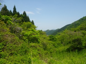 | 吊橋から福智山側を見る | 鱒淵登山口(9:30) | 作業道から登山道へ |