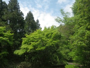 | 新緑と青空が素晴らしい | 樹林のトンネルを歩く | 小さな沢だけど |