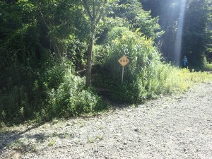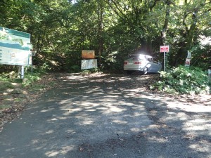 | 虎尾桜への標識(12:08) | 登山口が見えた | 無事上野登山口(12:20) |