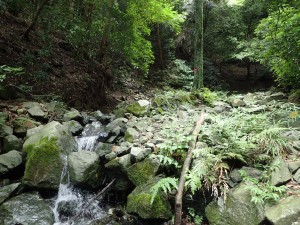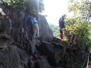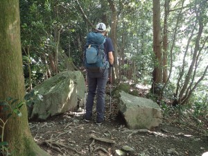 | 渡渉する | 階段状に尾根へと | 巨石が目に付く |