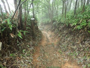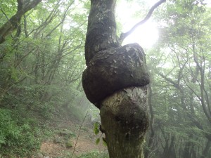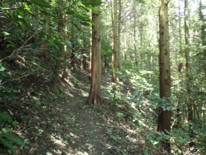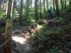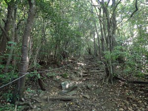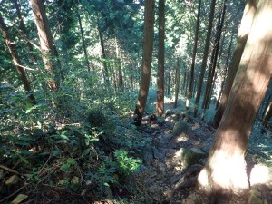 | 樹林帯の登山道 | 虎尾桜からの合流点(9:04) | 急登が続く |