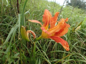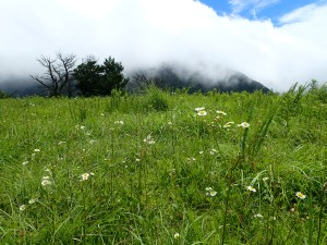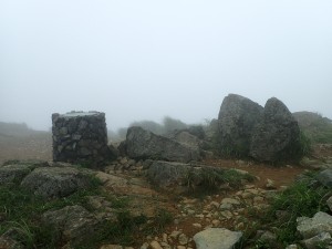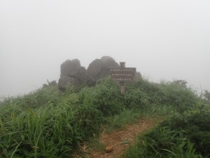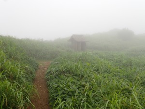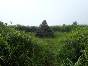 | ガスの切れ間の展望 | ヤブカンゾウ | ケルンがある |