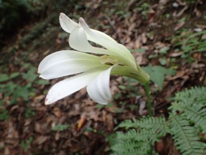 | ウバユリが一輪 | 川原を渡渉 | 川沿いに歩く |