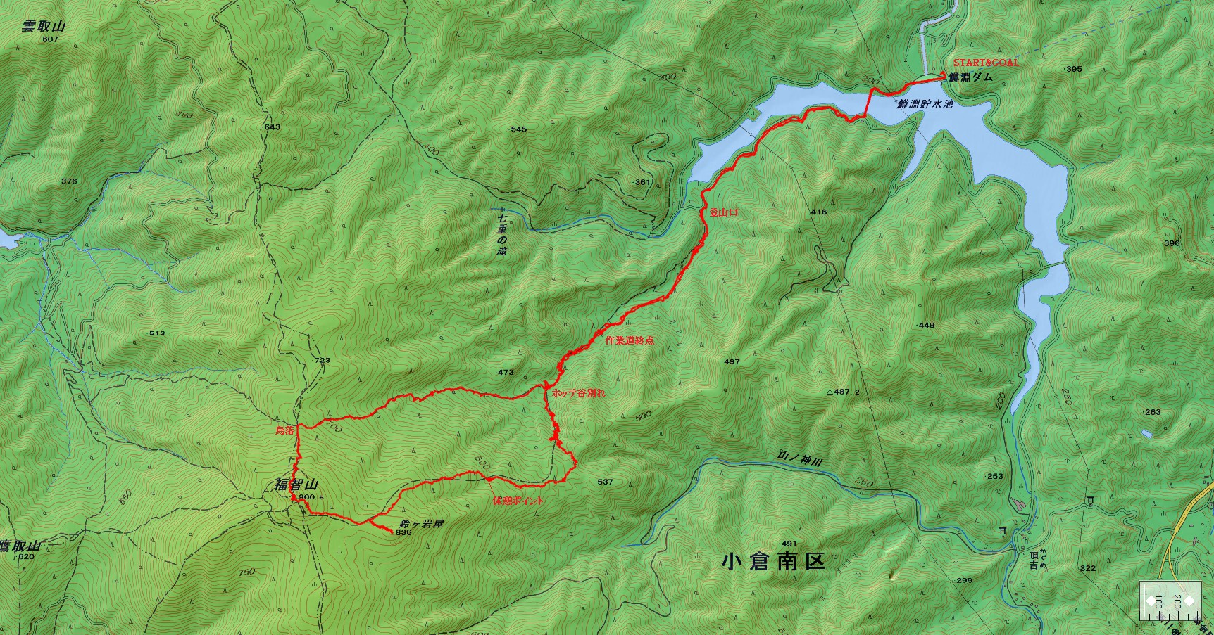 福智山登山コース(GPSによる歩行軌跡)