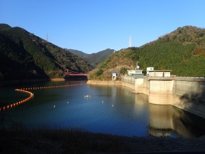 | ▲ダム湖の舗装道(サイクリングロード)から見た福智山 | ||