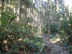 | これまた大きな杉の下にベンチ | 歩きやすくなった | 尾根から谷へ |