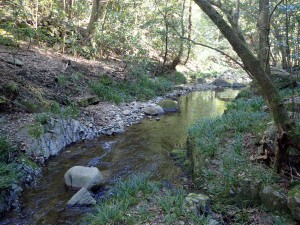 | 沢沿いに歩く | せせらぎが心地よい | 橋を渡る |