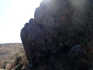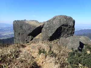 | 遠くに皿倉山が見える | 巨石群 | 山頂にある祠・・・山ノ神 |