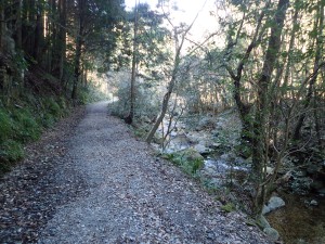 | 沢の水を見ながら降る | 登山口(14:05) | 舗装道を歩く |