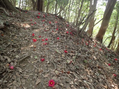 椿の落ち花の上を歩く、リッチな気分 |