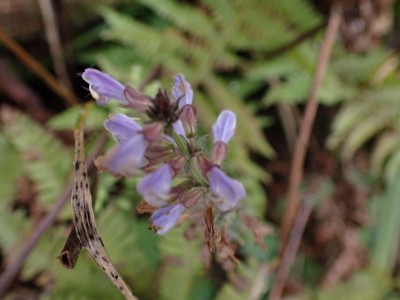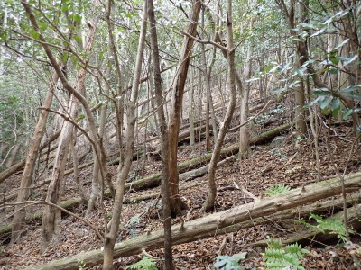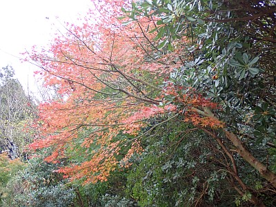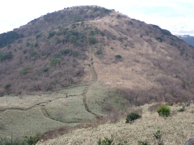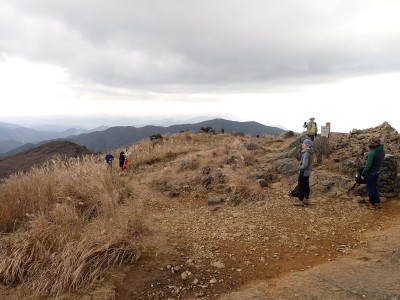 さて、登山口は駐車場から少し戻った右側のガードレールの所に「福智山登山口」と書かれた非公式な立て札がある。ちょっと奥に入ると仮設パイプで造られた頑丈そうな橋がある。確か7年前にここを歩いたときはなかったはずだ。ここからは林道を3回ほど出合ながら歩く。(地形図を見ればちょうどヘアピンカーブのところで出合っているのがわかる)九州自然歩道の大きな説明板のある砂利道の林道に出る。ここが大塔の別れである。ここから右に行くと上野越へと行ける。帰路は上野越へと降るのでここに降りてくるはずである。今回は大塔の滝へと真っ直ぐに進む。基本的に滝コースとなると当たり前だが尾根歩きではなく谷歩きとなる。滝にぶつかると一休みだ。なかなか良い滝だが、水量が少ないせいか迫力に欠ける。石のゴロゴロした谷を詰めると6合目と書かれた立て札がある。「未だ6合目?」と思わず。たくさんの倒木を見ながら進むと丸太の階段になる。雑木林から灌木帯になると緩やかな坂となり烏落の広場に出る。ここからは歩き慣れた道を山頂まで一気に登る。途中、たぬき水に立ち寄るが、水量が少ない。少雨のせいだろう。山頂は曇っていて風が強く温度計を見ると3℃。強風なので体感温度はもっと低いだろう。展望を写真に納め早々に下山開始。上野越を目指す。烏落まで登山者に全く出合わなかったが、山頂から上野越への降りでは多くの登山者に出合う。上野越から鷹取山をピストンして東屋のある薙野を通って大塔の別れまでのんびりと歩く。大塔の別れからは往路を駐車場まで戻る。車道に出ると朝よりも車が増えて道路脇につながっていた。上野越からここまで一組の登山者と出合っただけだが、一体皆、どこを歩いているんだろうか。今日も自然に山に感謝!!