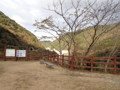 福智山ダム湖を車で回ると一方通行なので途中で引き返せない。ここが初めての場合はどこに駐車できるかわからないだろう。トンネルの手前に駐車場があるが、ここが満車だともう一周して駐車場の手前辺りの路肩に停めるしかない。