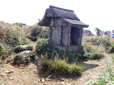 祠の前で手を合わせお礼を述べる。山頂はたくさんの登山者で賑やかだ。少々早いが昼食をとる