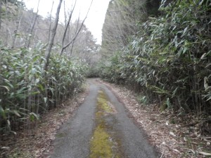 | 親父山登山口を出発(午前6時30分) | 舗装されているようだが | すぐにデコボコになる |