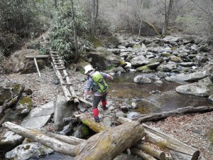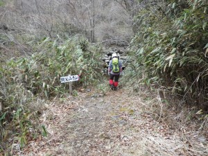| いよいよ車は無理 | ここから川原に取り付く | 壊れた橋がある |