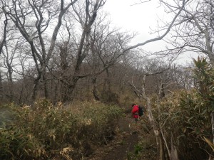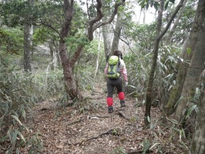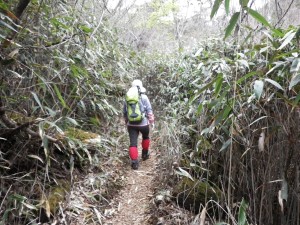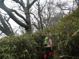 | 潅木帯になってきた | 祖母山が見えた | スズタケの中もうすぐ山頂か |