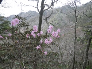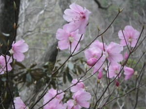 | 樹木を見上げるとりっぱな木ばかり | アケボノツツジが咲いている | ここも咲き始め |